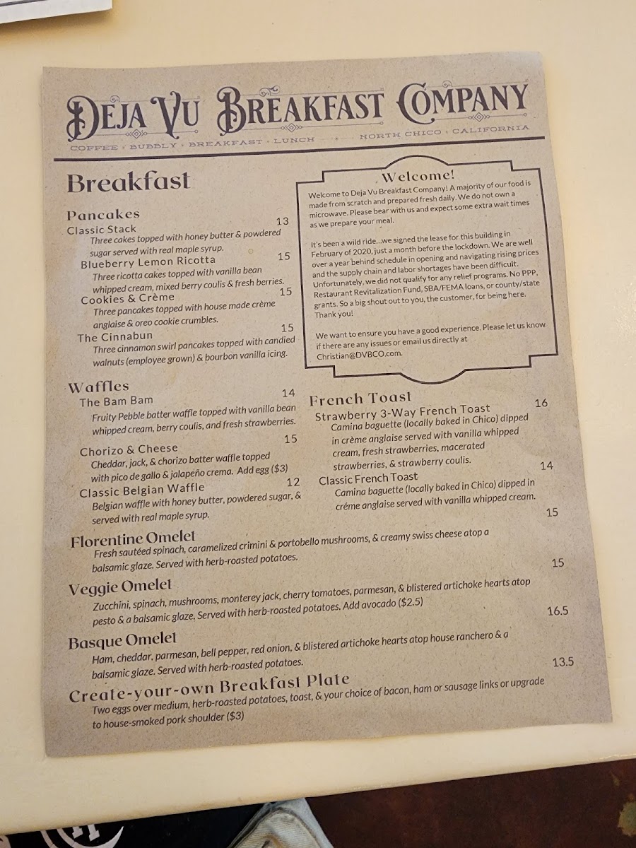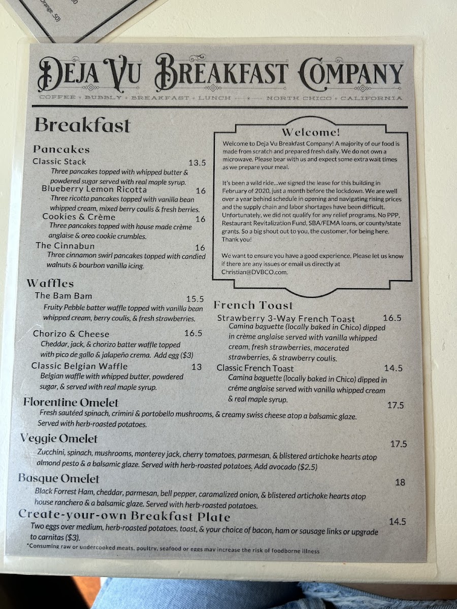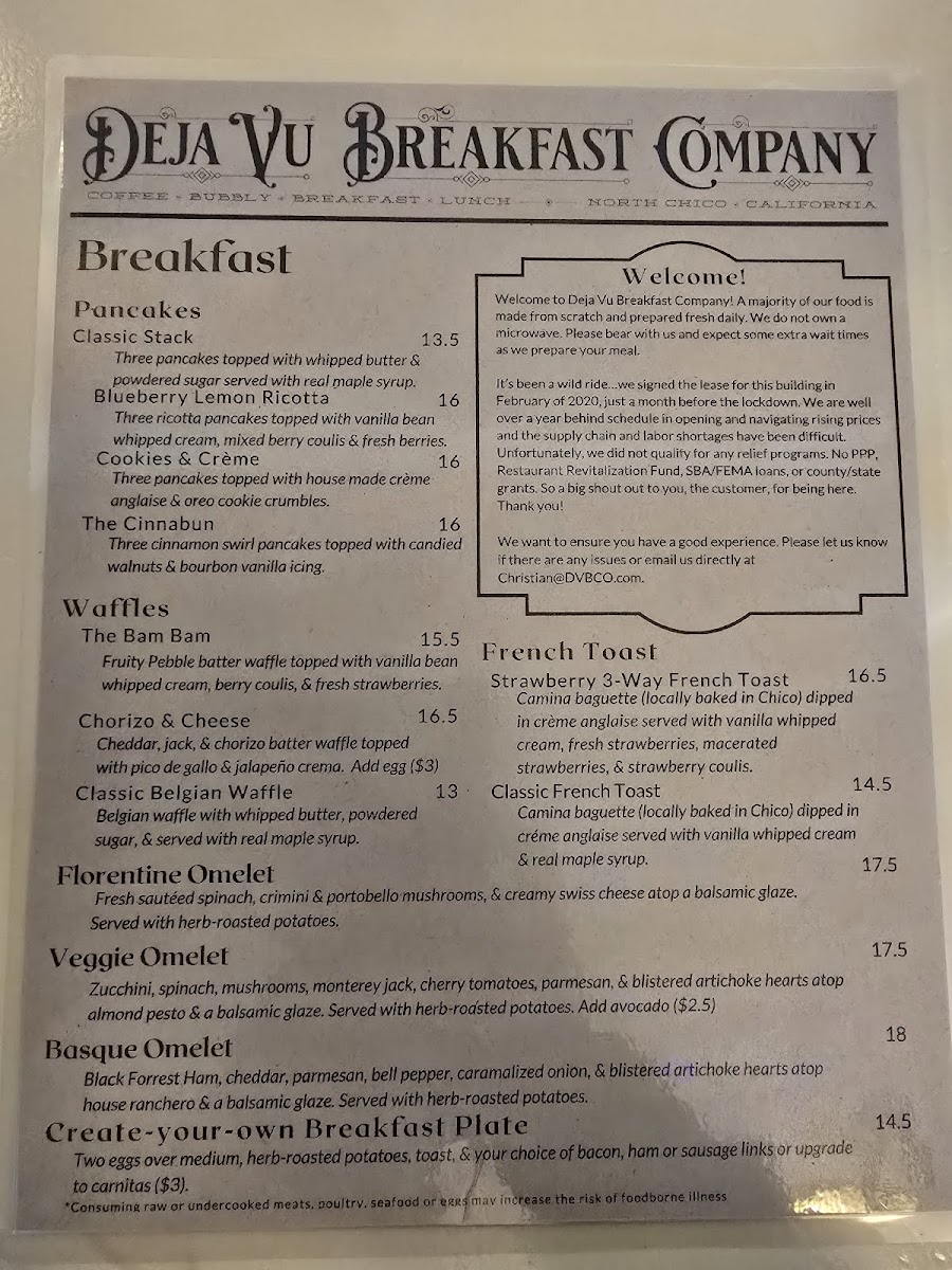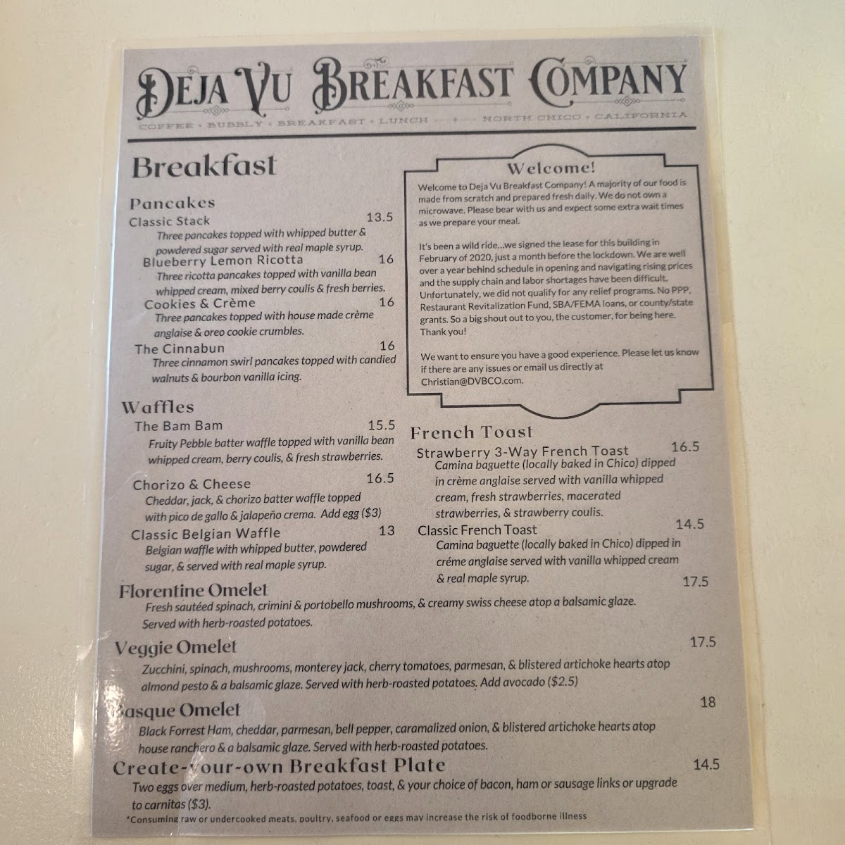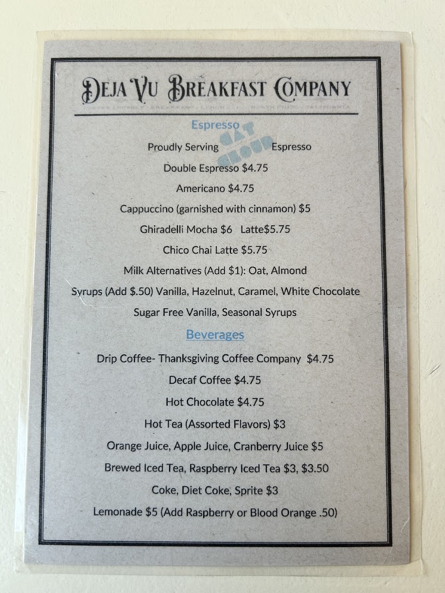 Deja Vu Breakfast Company offers a thoughtfully curated menu that blends classic breakfast favorites with creative comfort dishes. The selection feels approachable and satisfying, perfect for starting a leisurely morning or enjoying a relaxed weekend brunch. Whether you're stopping by early for a warm espresso or settling in for a generous plate of chicken and waffles, the menu complements the inviting, unpretentious atmosphere.