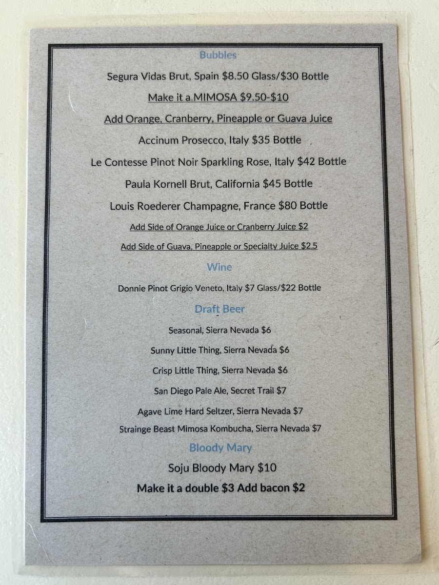 Alongside food, the drink offerings add warmth and subtle complexity to the experience. Espresso-based drinks, from cappuccinos to seasonal chai lattes, pair well with nearly any dish, while carefully selected draft beers and craft seltzers offer a refreshing alternative for a laid-back brunch.